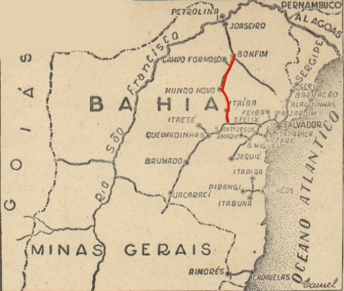de Paraguassu (Iaçu), na linha Sul, a linha saiu para alcançar
