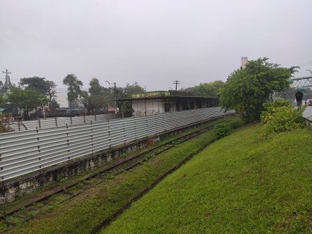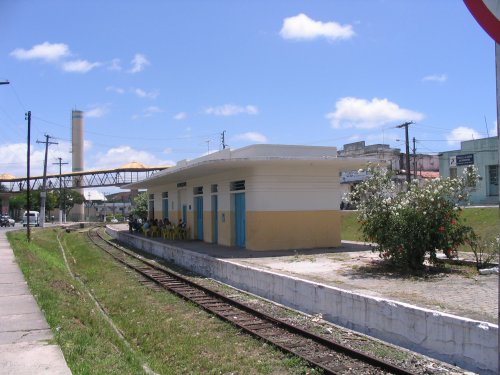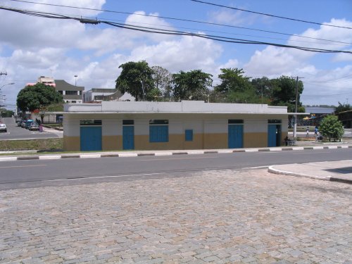 e murada pelo risco de depredação. por tapumes de metal e uma placa que anunciava "a restauração e requalificação do terminal de transbordo da linha férrea", lendo as letras miúdas na parte inferior da placa da pra ver que há a intenção de se construir um museu.
