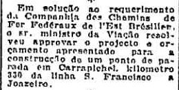 AO LADO: Criação da estação, aqui citada no km 330 (a partir de São Francisco)