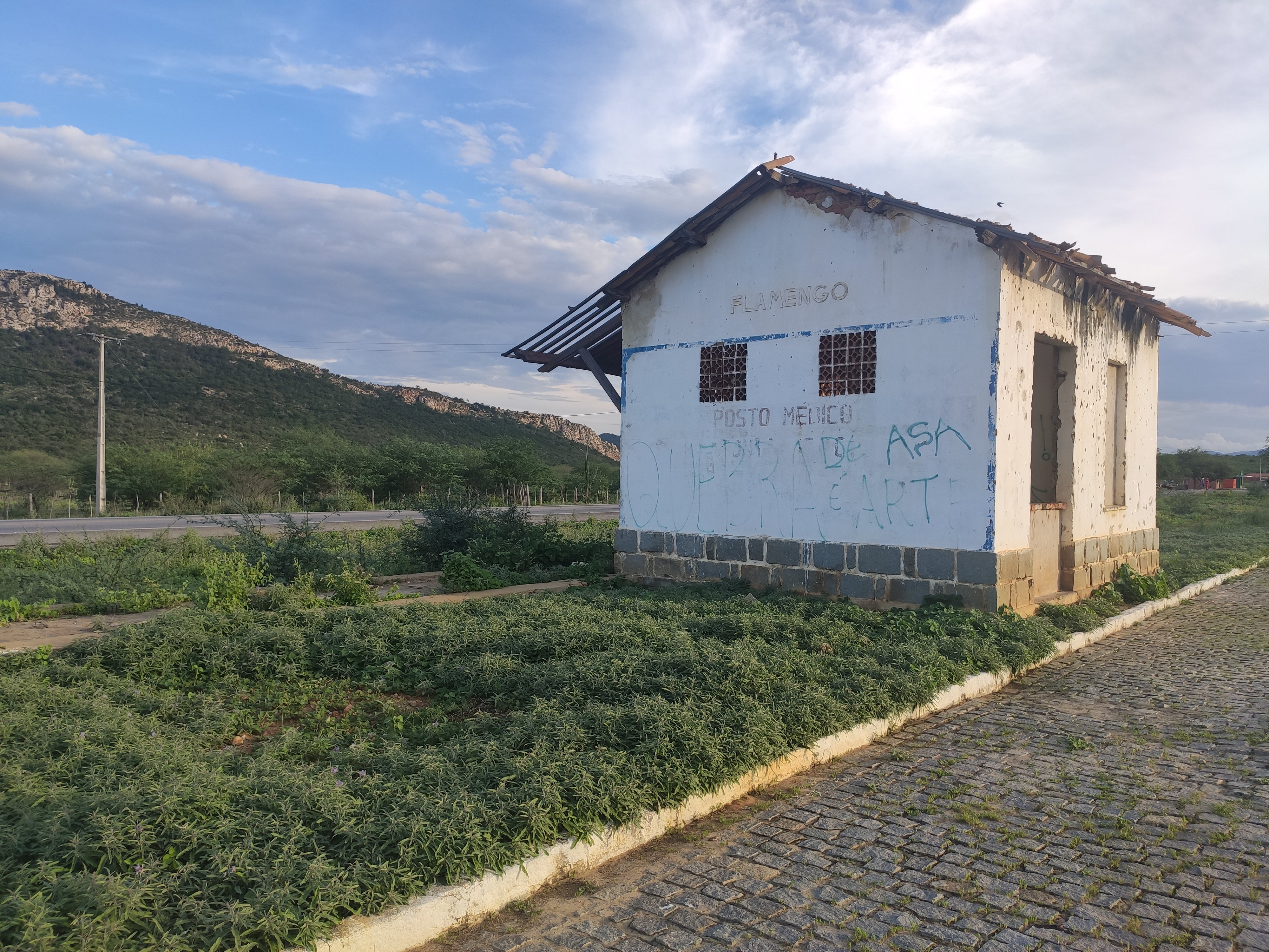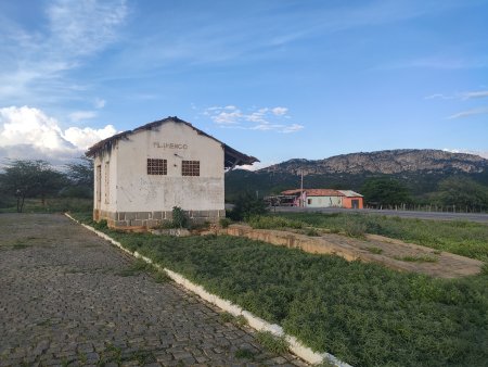 ACIMA: A estação e a visão de um morro de pedras ao fundo em 2021 (Foto Rodrigo Henrique em 19/12/2021).