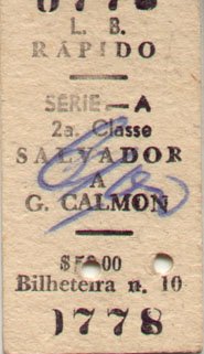 da Leste Brasileiro de segunda classe, em trem de Salvador a