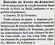 da estação em 1896 (Jornal do Recife, 26/2/1896).