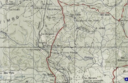 ACIMA: A Parada Pitanga e a saída do ramal para a Usina Pitanga, em mapa possivelmente dos anos 1970 - CLIQUE SOBRE O MAPA PARA VÊ-LO EM TAMANHO MAIOR (BDGEx - Banco de Dados Geográfico do Exército).