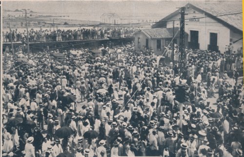 ACIMA: Comitiva de Getulio Vargas em visita a Aracaju, em frente à estação (Revista da Semana, setembro de 1933).