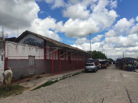 ACIMA: A estação vista desse lado tinha o patio, ao fundo, abrigando a feira livre em 2022 (Foto Rodrigo Henrique em janeiro de 2022).