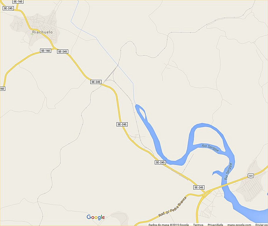 uma curva de 90 graus e junto ao rio Sergipe (Google Maps, 2015).