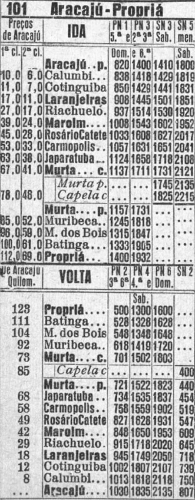 Aracaju em 1913, Cedron em 1915 e Propriá somente em 1956,