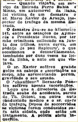 São Paulo, e outra na E. F. Bahia-Minas, no Estado da Bahia.