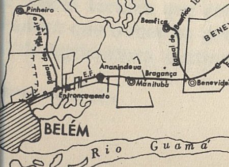 entre Belém e Benevides, em 1884 - o mapa é de 1908.