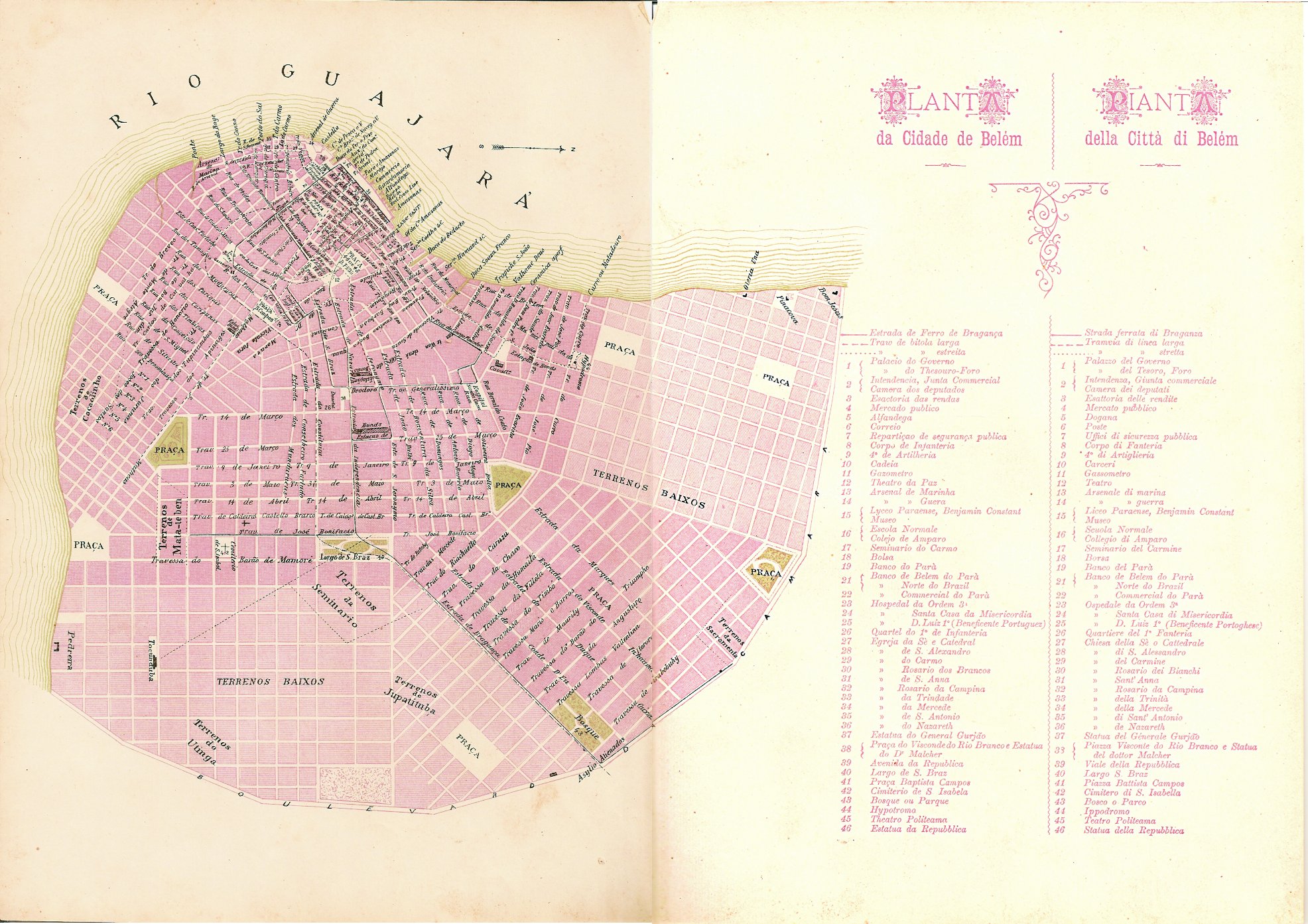 ACIMA: Mapa da cidade de Belem em 1889, mostrando