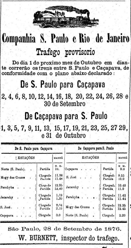 A partir de 1º de novembro, os trens para Caçapava passavam a ser regulares - ou seja, diários - desde São Paulo, sem a troca em São José (Ver caixas abaixo, de 1876).