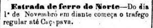 AO LADO: Os trens para Caçapava começarão em 1º de novembro a ter tráfego regular (diário) (A Provincia de S. Paulo, 31/10/1876). |