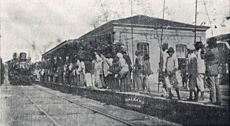 ACIMA: Trem chgando à estação de Caçapava, em 1912 (Foto Galeano, para a revista Illustraçãp Paulista).