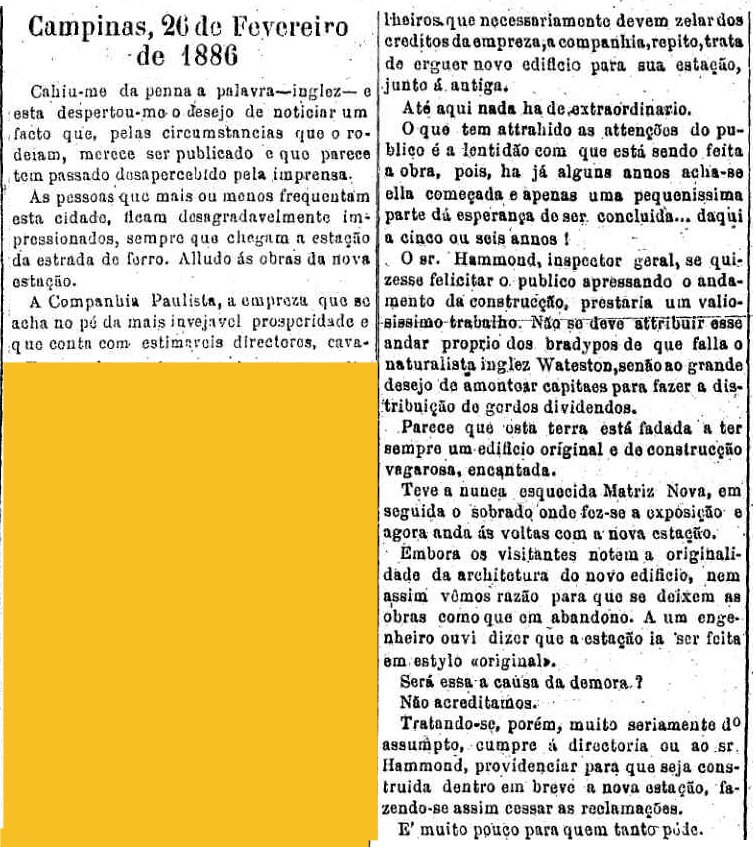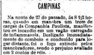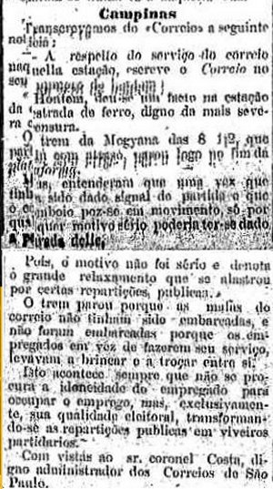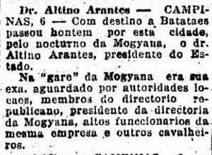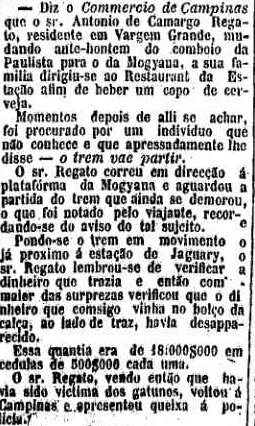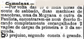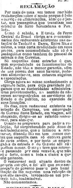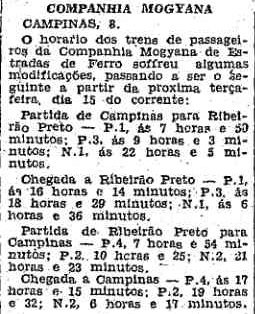 na estação de Campinas. Notar referência da outra estação que fica em Igarapava e não se chamava Itagy, mas Igati (O Estado de S. Paulo,