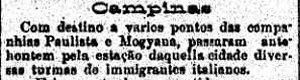Campinas (O Estado de S. Paulo, 30/4/1922). |