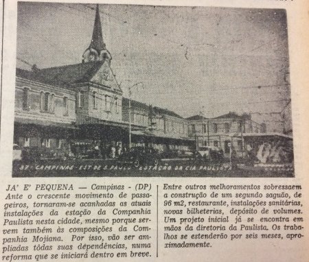 ACIMA: A estação de Campinas já era pequena para o seu movimento em 1964. Quem imaginaria então que, apenas 37 anos mais tarde, ela seria fechada por falta de movimento? (Diario Popular, 19/8/1964).