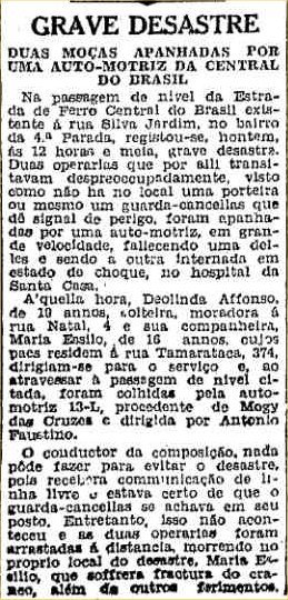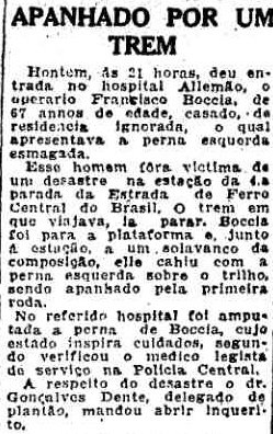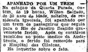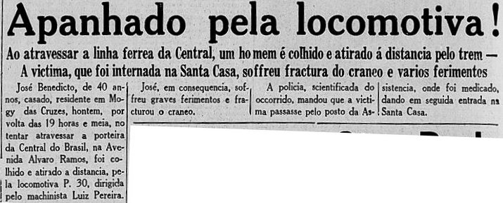 ACIMA: Atropelado por um trem na passagem de nível da ferrovia na avenida Alvaro Ramos, ao lado da Quarta Parada, em 1936 - CLIQUE SOBRE A IMAGEM PARA VER TODA A REPORTAGEM (Correio de S. Paulo, 21/5/1936).