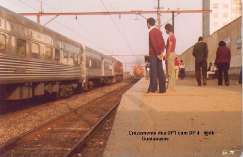 em 1977, o cruzamento dos trens DP1 com DP4. Foto Alberto del
