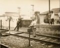 o chefe da estação anunciando o trem: 'tronco a Mogi