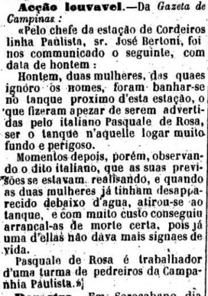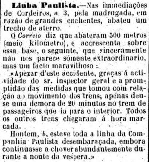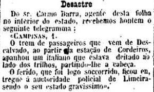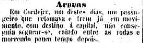 AO LADO: Atropelamento perto de Cordeiros (O Estado de S. Paulo, 1/4/1892). |