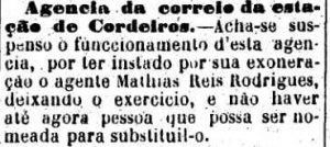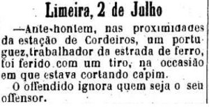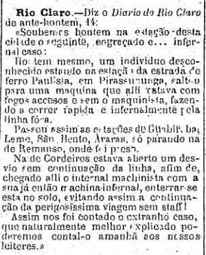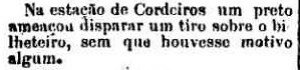 AO LADO:Tiros nà estação de Cordeiro (A Provincia de S. Paulo, 15/6/1888). |