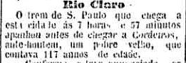 AO LADO: Atropelamento perto de Cordeiros (O Estado de S. Paulo, 16/4/1893). |