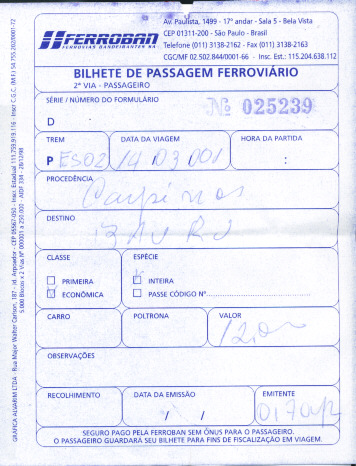 por Vanderlei Zago. Mas o trem de Campinas chegou no horário. A viagem
