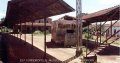 O armazém está quase coberto de tanto mato. A cabine, depredada