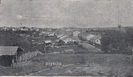 ACIMA: A cidade de Dobrada por volta de 1912. Pode ser que a estação apareça na foto e pode ser a construção bem no centro da foto, mas isto necessita comprovação (foto provavelmente da revista Illustração Paulista).
