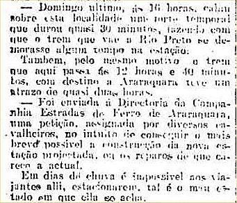 A estação, oito anos depois de inaugurada, tinha a concorrência da estação de Motuca, do ramal de Jaboticabal da Paulista (ver caixa abaixo, de 1909).