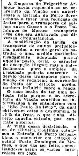 de Moraes da Estrada de Ferro Sorocabana, inaugurada em 1920, quando