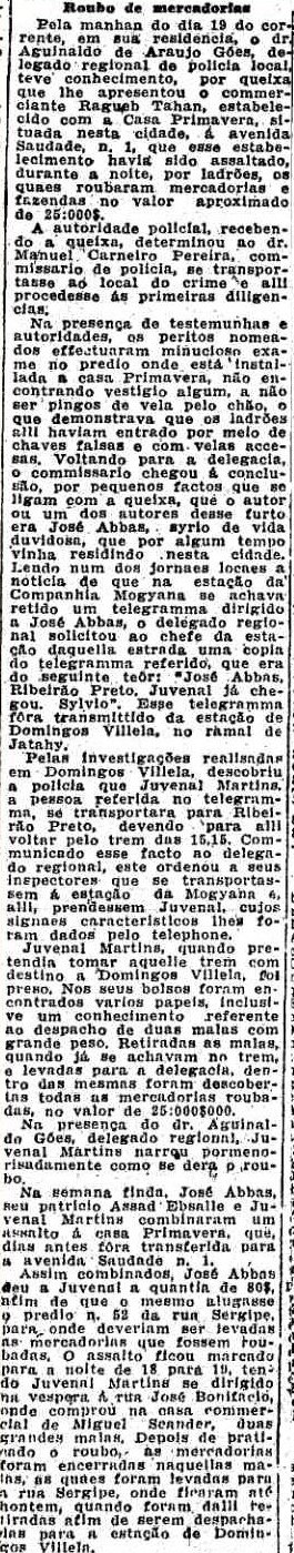 AO LADO: A estação era parte importante no esquema fraudulento de uma quadrilha de Ribeirão Preto (O Estado de S. Paulo, 28/2/1929). |