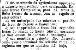 Em 1898 (ver caixa abaixo), a estação já se chamava Doutor Lacerda, mas o ramal ainda era chamado de Ramal de Santa Maria.