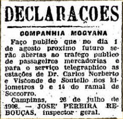 ramal de Socorro foi inaugurado pela Mogiana em 1908 até Visconde