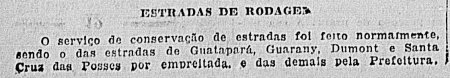 ACIMA: Estradas de rodagem ligando Ribeirão Preto a cidades vizinhas, que também já tinham estações de trem, recebem melhorias feitas pela prefeitura (Correio Paulistano, 28/01/1928, página 12).