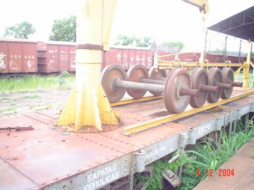 um vagão prancha e um vagão rodeiro e um dos carros de passageiros foi