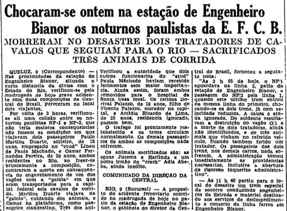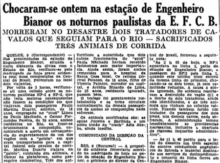 Acidente a 2 km da estação (O Estado de S. Paulo,