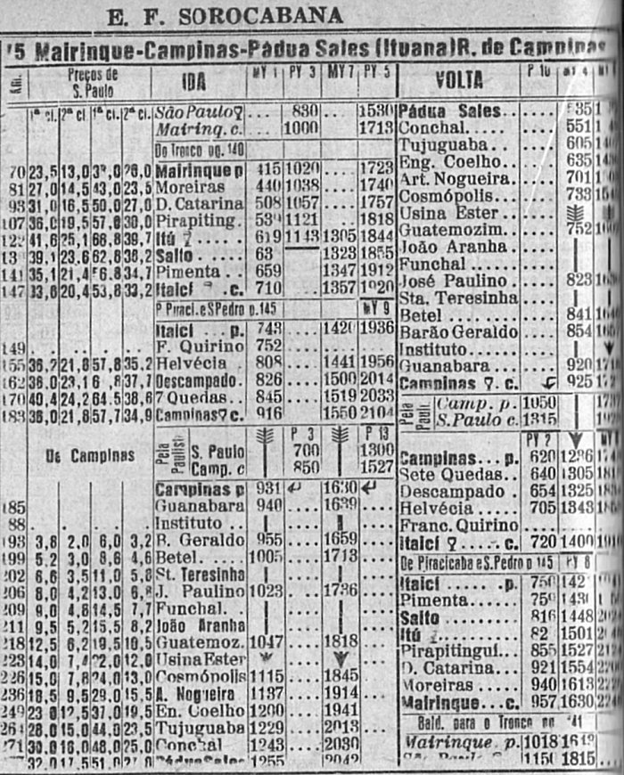 Pádua Salles, com 93 quilômetros. A linha foi fechada no início de