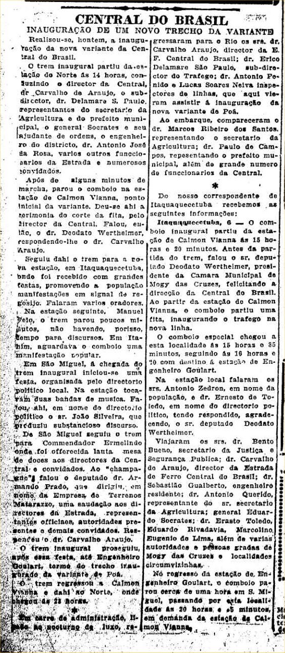 sua construção. Começava na estação de Calmon Viana e terminava na