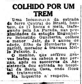 AO LADO: Atropelamento na (nova) 5a parada. Note que o nome Engenheiro Gualberto é citado. Acredito que, como esperado, fossem ambos a mesma estação (ou parada)