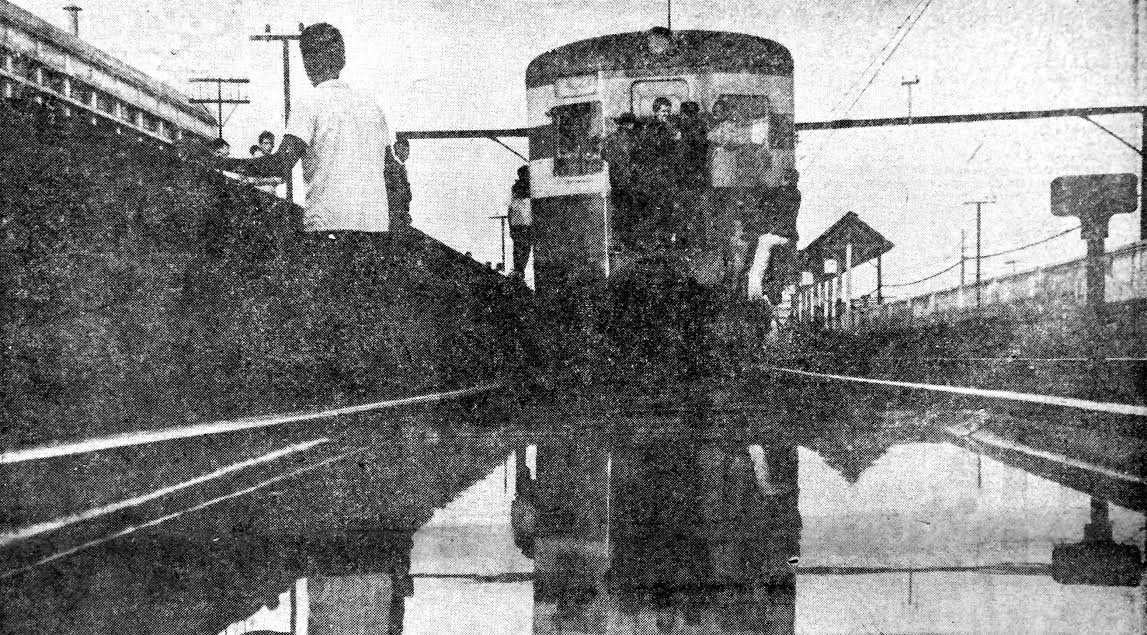 ACIMA: População protesta contra o fechamento da passagem de nivel na estação de Engenheiro Gualberto em 1967 (Folha de S. Paulo, 16/8/1967).