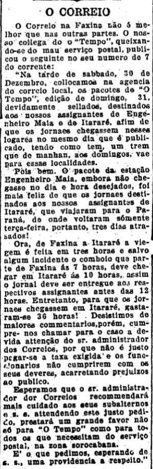 AO LADO: A estação de Engenheiro Maia tinha realmente uma preferência nas correspondências recebidas diariamente ali? (O Estado de S. Paulo, 10/1/1917). |