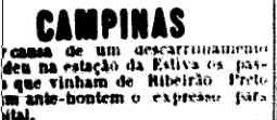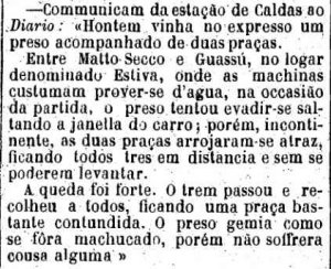 AO LADO: Descarrilamento em Estiva (o texto está incompleto) (O Estado de S. Paulo, 26/5/1890). |