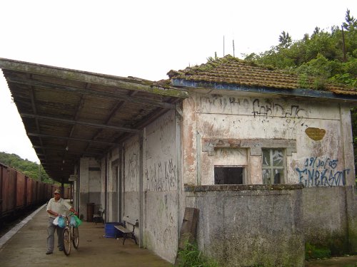 Meia dúzia de casinhas, todas abandonadas, a estação depredada, trens