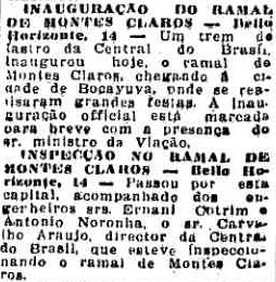 que alcançou Montes Claros, em setembro de 1926.