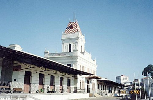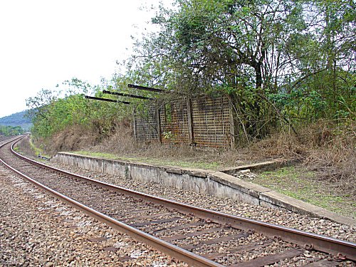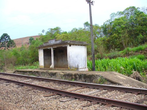 Em frente à parada, outra plataforma e uma casinha abandonada,