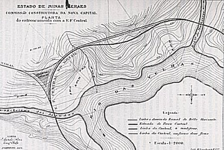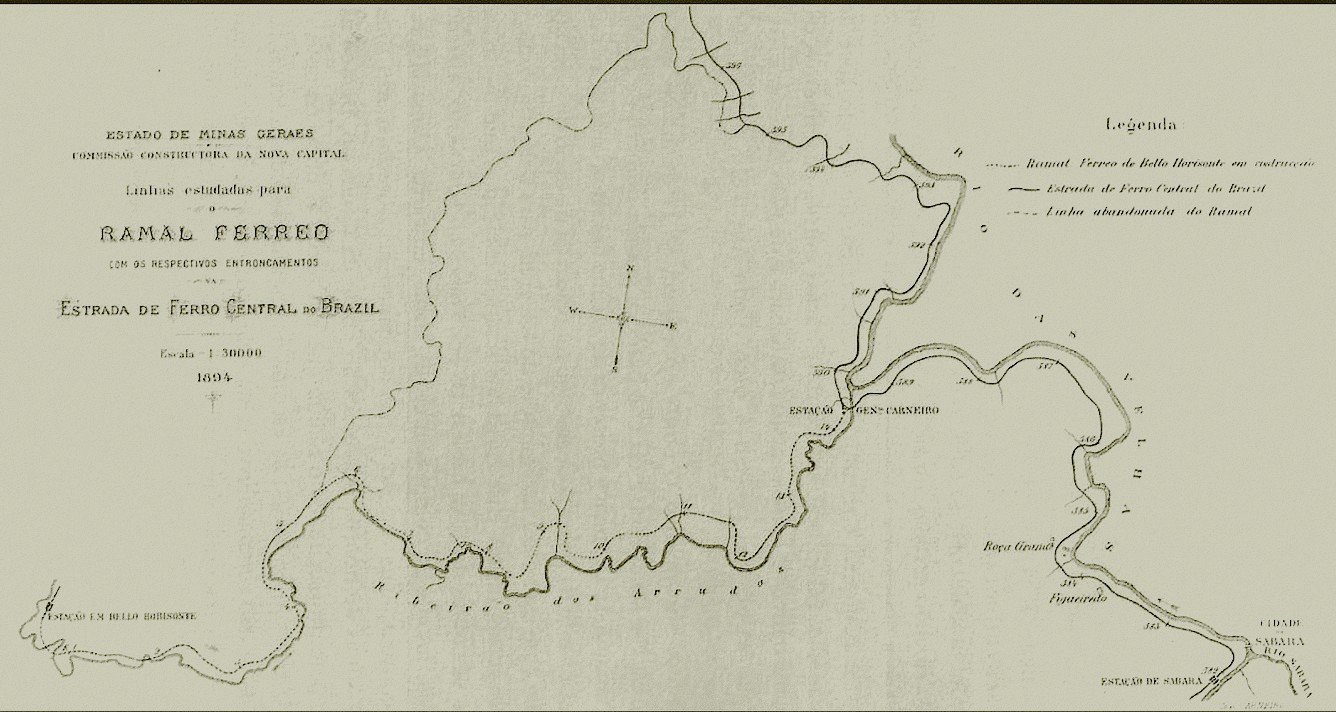 ACIMA: Mapa do ramal General Carneiro a Belo Horizonte em 1894 - CLIQUE SOBRE ELE PARA VÊ-LO EM TAMANHO MAIOR (Comissão Construtora da nova capital, 1894).
