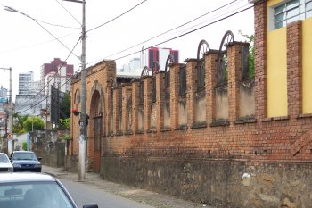 portas. Abaixo, uma outra construção em tijolos aparentes está