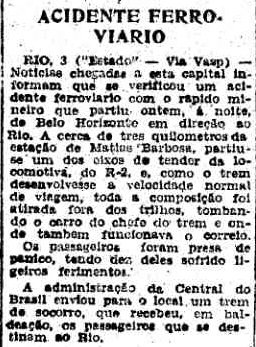 AO LADO: Acidente a 3 km da estação (O Estado de S. Paulo, 4/7/1942). |