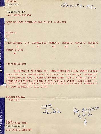 Telegrama sobre a mudança para a nova estação,